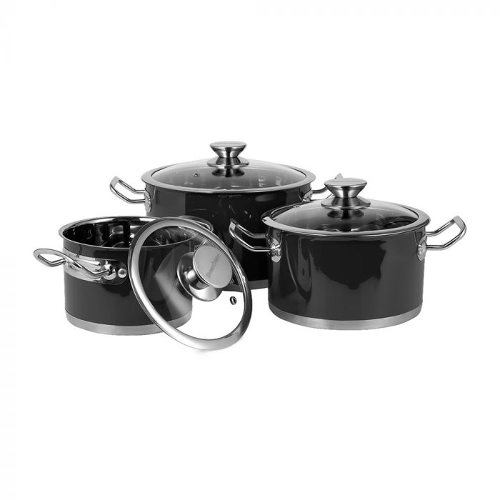 Zestaw garnków ze stali nierdzewnej Vintage Cuisine retro czarny 6 el.