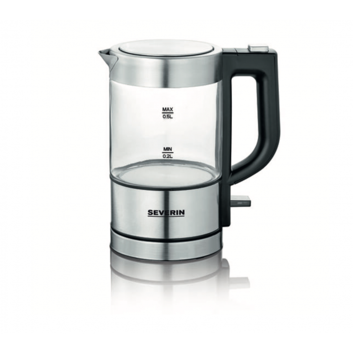 Wysoka jakość i wygoda: kompaktowy szklany mini czajnik o pojemności 0,5 l - idealny do małych gospodarstw domowych. Stylowy wygląd dzięki nowoczesnemu połączeniu stali nierdzewnej i szkła odpornego na temperaturę. Praktyczny i przyjemny: ergonomiczny uchwyt ułatwia obsługę jedną ręką. Posiada dwustronny wskaźnik poziomu wody dla leworęcznych i praworęcznych.