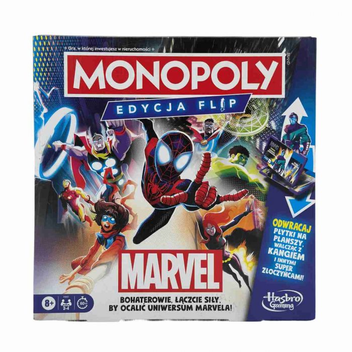 Monopoly Flip Marvel – dynamiczna wersja klasycznej gry! Plansza obraca się w trakcie rozgrywki, zmieniając zasady i dodając emocji. Bohaterowie Marvela, nowe strategie i świetna zabawa dla całej rodziny. Idealny prezent dla fanów superbohaterów!