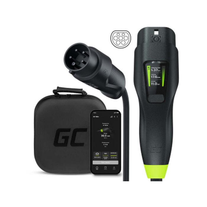 Green Cell Habu Ładowarka Mobilna EV 11 kW 7 m Typ 2 CEE do Ładowania Pojazdów Elektrycznych EV PHEV 2w1 Wallbox z Aplikacją GC