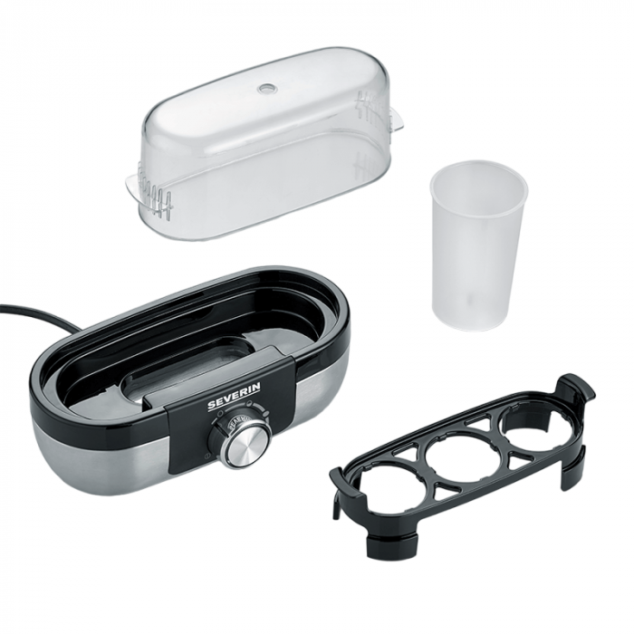 Obudowa z tworzywa sztucznego w połączeniu z płytą grzewcza ze stali szlachetnej. Zabezpieczenie przed przegrzaniem gwarantuje poczucie bezpieczeństwa. Sygnał akustyczny po zakończeniu procesu gotowania zgodnie z ustawionym stopniem miękkości jajka zapewnia spokój oraz komfort użytkowania.