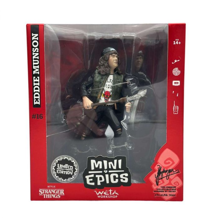 Figurka Eddiego Munsona w stylu MINI EPICS, pełna detali i wykonana przez Weta Workshop. Idealna dla fanów Stranger Things — do kolekcji, dekoracji i na prezent. Oryginalna licencja Netflix.