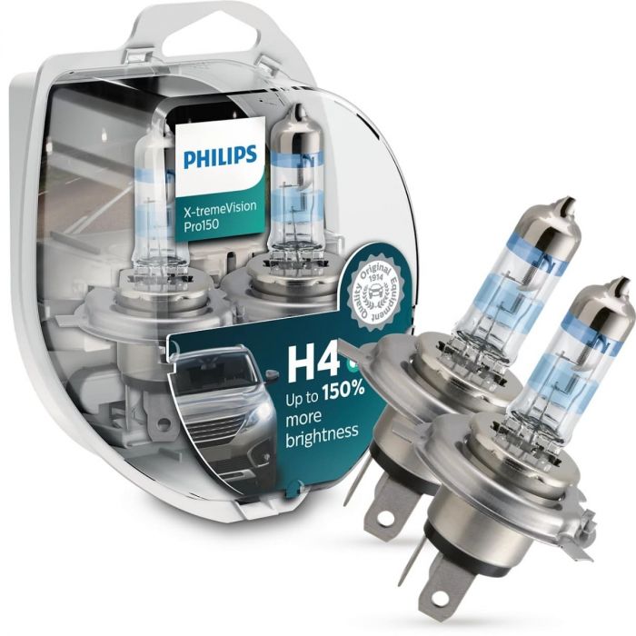 Żarówka halogenowa, Philips X-TremeVision PRO150 H4, 12 V, 60/55 W, 2 szt