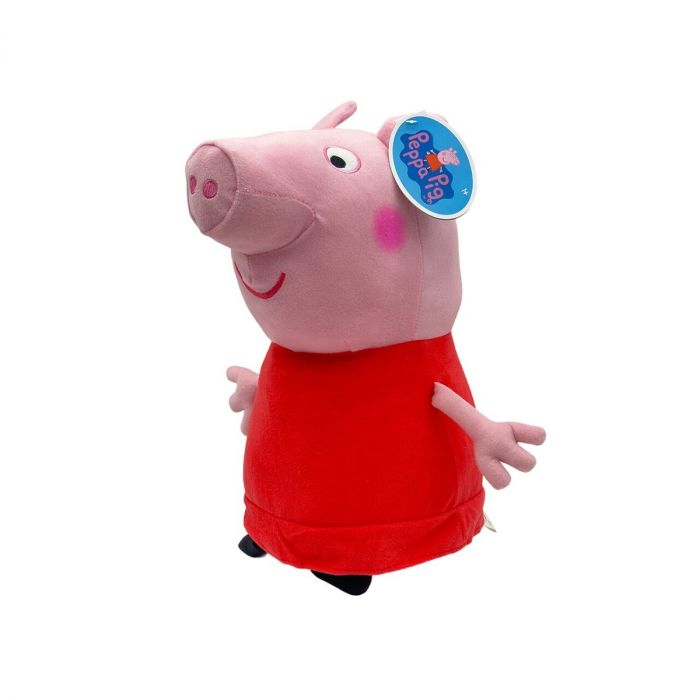 Duży pluszak 50 cm przedstawiający Świnkę Peppę. Mięciutki, przyjemny w dotyku i idealny do przytulania oraz zabawy. Wiernie odwzorowany wygląd z bajki. Świetny prezent dla dzieci. Produkt licencyjny.