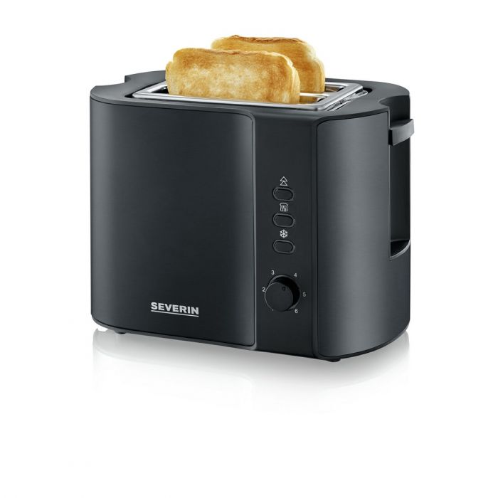 Toster Severin AT 9552 posiada wysokiej jakości lakierowaną obudowę ze stali nierdzewnej w czarnym kolorze. Posiada wbudowany ruszt do opiekania bułek ułatwiający przygotowanie bułek. Ponadto toster wyposażony jest w funkcję rozmrażania z lampką kontrolną.