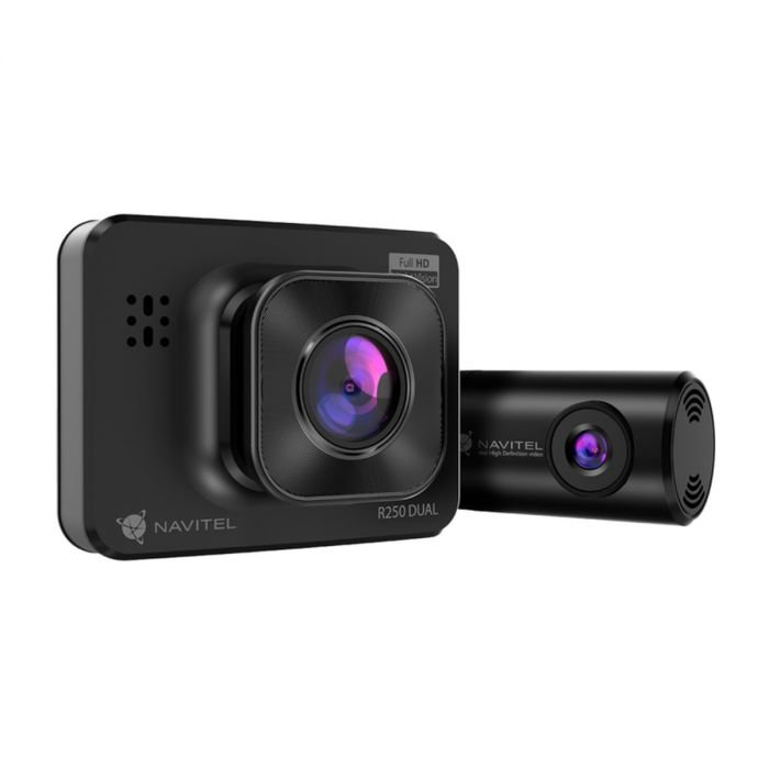 Navitel R250 Dual nagrywa w Full HD (1920×1080) z kątem widzenia 140° przednią i HD w 100° tylną kamerą. Obsługuje pamięć do 64 GB, posiada G-sensor, detekcję ruchu, Autostart, nagrywanie w pętli, mikrofon i wyświetlacz 2".