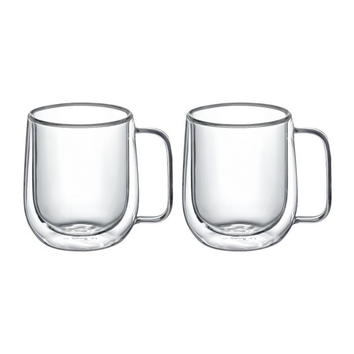 Zestaw dwóch szklanek 250 ml MIA marki Ambition. Szklanki MIA z uchwytem wykonane są z dwuwarstwowego cienkościennego szkła borokrzemowego, odpornego na wysokie temperatury. Podwójna ścianka zapewnia dłuższe utrzymanie temperatury napoju. Szklanek można używać w mikrofalówce oraz w zmywarce.